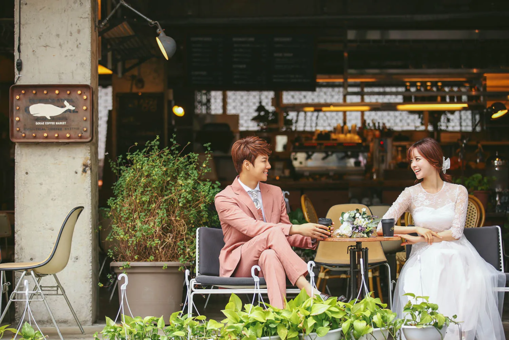 Cafes has been very well-loved by the new generation thanks to their aesthetic (미적인) interior and exterior along with the chill and relaxing (편안한) atmosphere (분위기). There are so many different themes of cafes in Korea including minimalist to futuristic cafes. Another fact is that cafe is where many couples have their dates, which will make them think of the dating days after married.