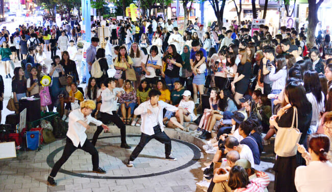 It is not an exaggeration to say that you never fail to see a large crowd of people dancing and singing as you walk through the busy streets of places like Hongdae.