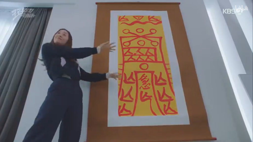Bujeok is a yellow (노란색) talisman paper that were used in the Korean traditional shamanism (샤머니즘). Many households (가구) have these stuck on their walls or above doors so that the house is safe (안전). This is because bujeok is known to bring good luck and chasing away evil spirits (악령) and bad luck.