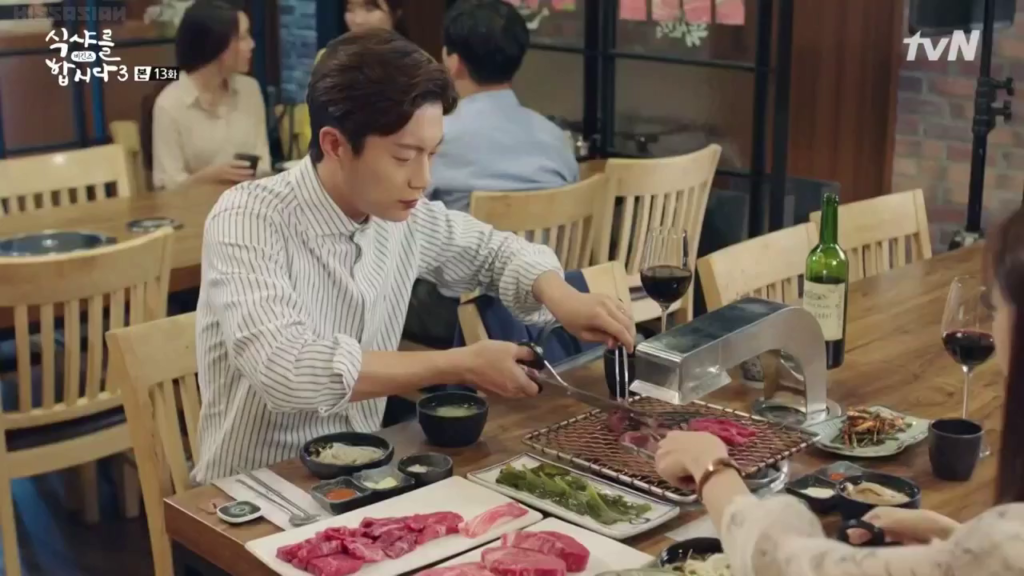 애인이 친구의 깻잎을 눌러준다 / 친구가 애인의 깻잎을 눌러준다
