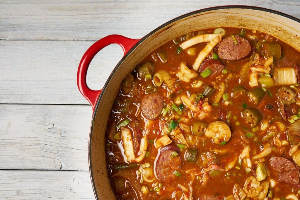 Invented by Koreans living in Louisiana (루이지애나). They mixed gumbo, a Cajun dish, with kimchi.