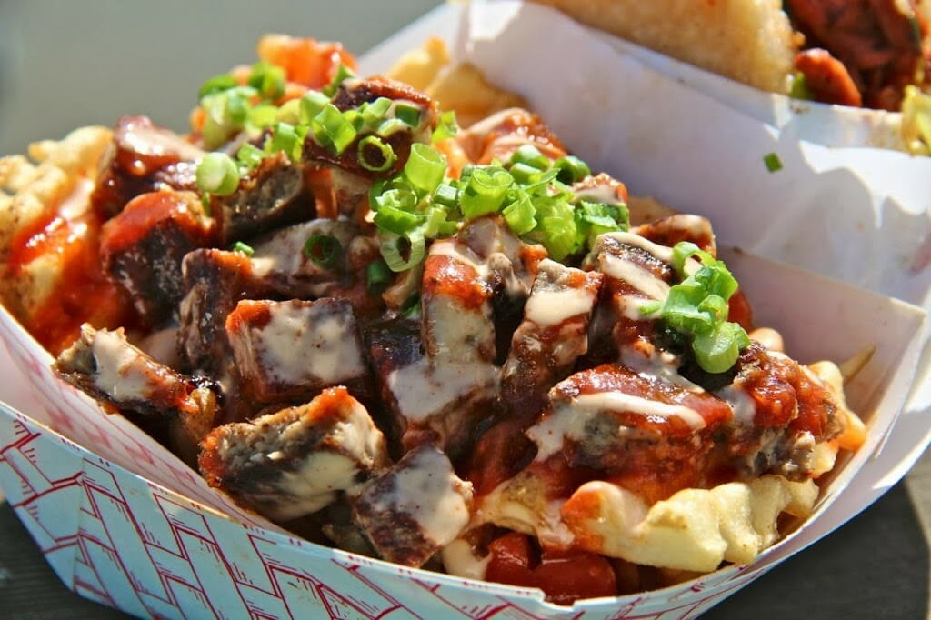 Korean-American street food has taken the concept of “loaded” French Fries to another level : smothering fries in kimchi (김치), kalbi (갈비) and garlic (마늘).