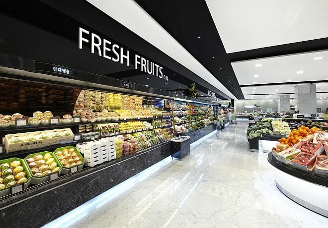 Normally, people in Korea don’t purchase fruits (과일) from department stores because they’re way more expensive compared to buying at regular markets. The best known department store would be Hyundai Department Store (현대 백화점) Supermarket.