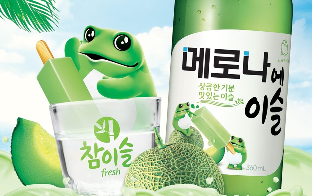This product is created by Hite Jinro (하이트진로) a popular soju brand along with Binggrae (빙그레), a famous F&B corporation well-known for their ice cream and milk products. It is a melon (멜론) flavored Melona (멜로나) soju that has a lower alcohol content that many people can drink without worrying about their alcohol tolerance (주량).