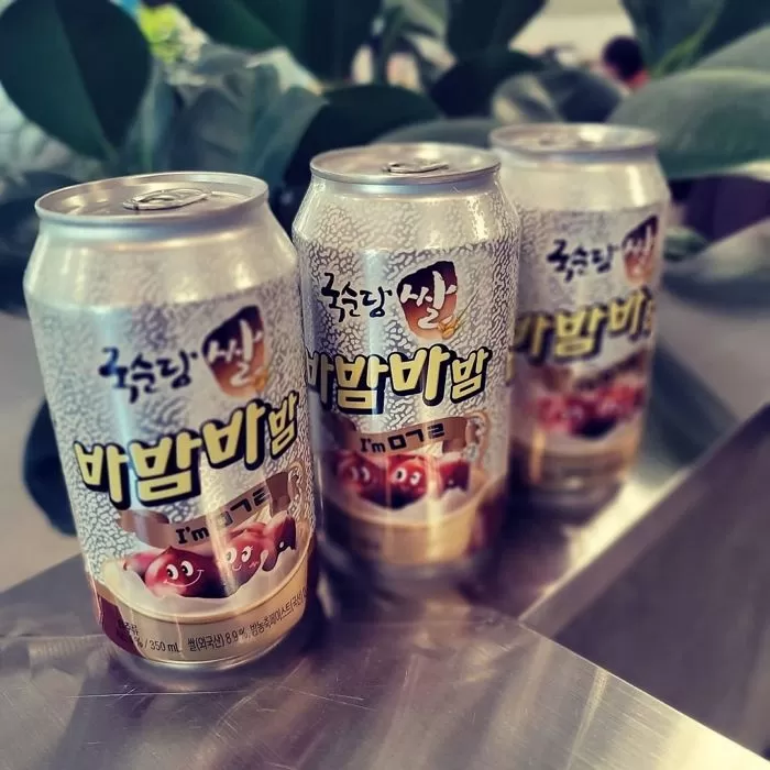 This is a makgeolli (막걸리) drink with the combination of caramel-coated wheat puff snack by Jollypong Snacks. The taste of the makgeolli and snacks went great together, attracting lots of positive response from consumers. It was planned to only develop 100,000 cans but was increased to 300,000 as it was loved by so many people.