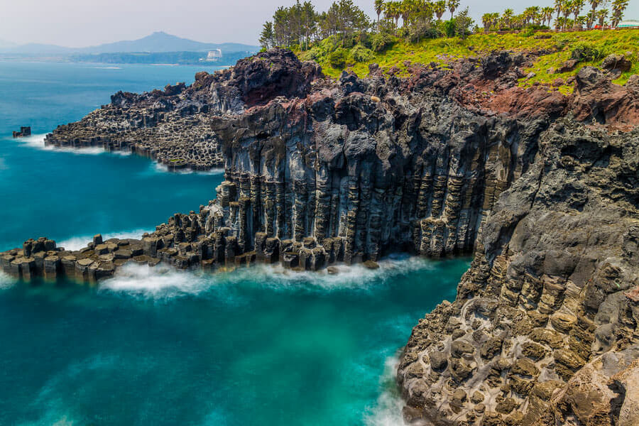 Jusangjeolli Cliff lies just 600 metres southwest from Daepo-dong. The Jusangjeolli Cliff was formed when the lava erupted from the Hallasan Mountain into the Jungmum sea.