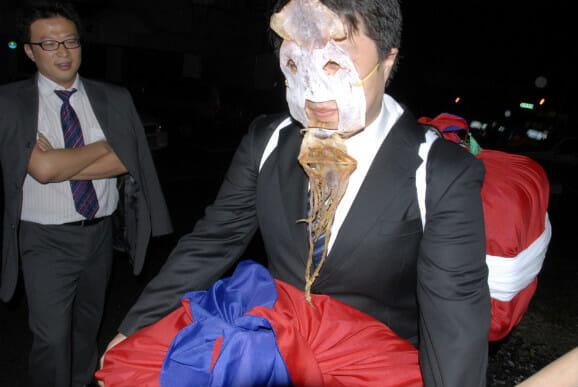 The dried squid is worn mainly by the 함진아비 “hamjinabi” – the participant carrying the 함 “hahm”.