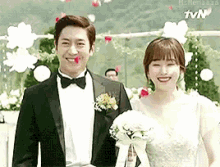 The newlyweds appear wearing their wedding 한복 “hanbok”, usually intricate in design and looks absolutely stunning!