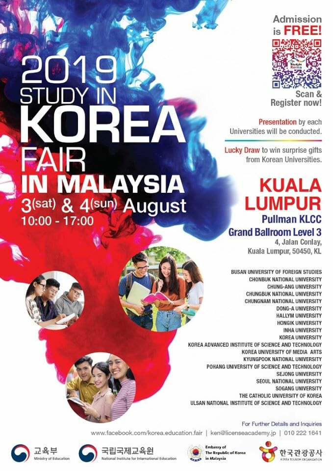 There are more universities from Korea who are going to be a part of this Study In Korea 2019 Fair, so do not hesitate to drop by at Pullman KLCC this 3rd and 4th August!