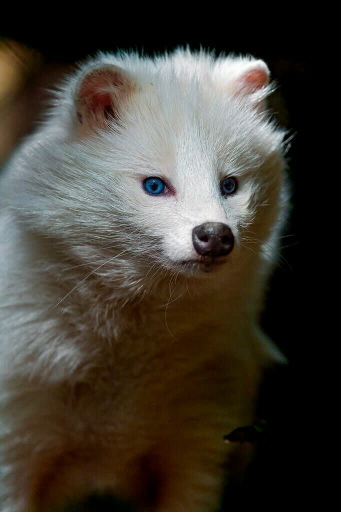 Atypical and precious white color raccoon dog species exist in China and Japan.