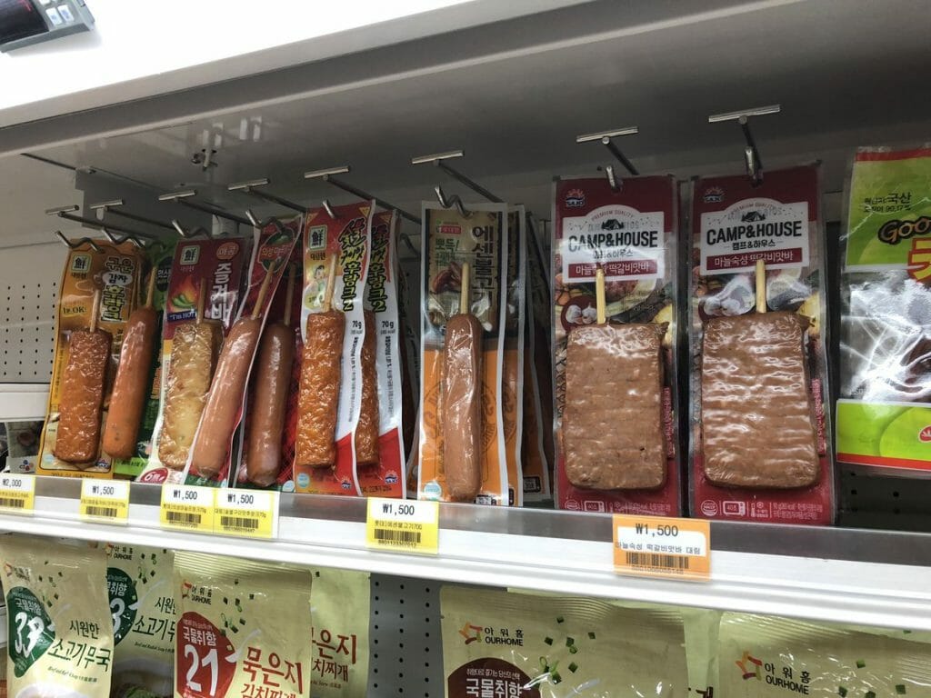 These sausages and other meat sticks are vacuum-packed, bursting with flavours like garlic, cheese and even spicy! They are called hot bars.