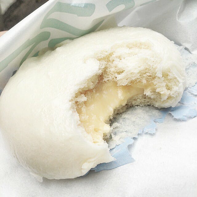 With milk custard inside, soft and creamy. Heat up the bun for 30 seconds then prepare your taste buds for some delicious, oozing warm milk and the soft bun texture!