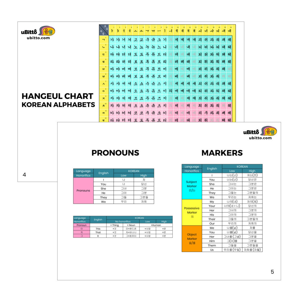 This is a handy sheet for beginners which gives you a complete overview of Korean alphabets – both vowels and consonants.